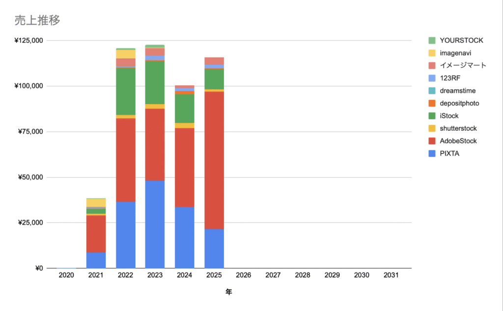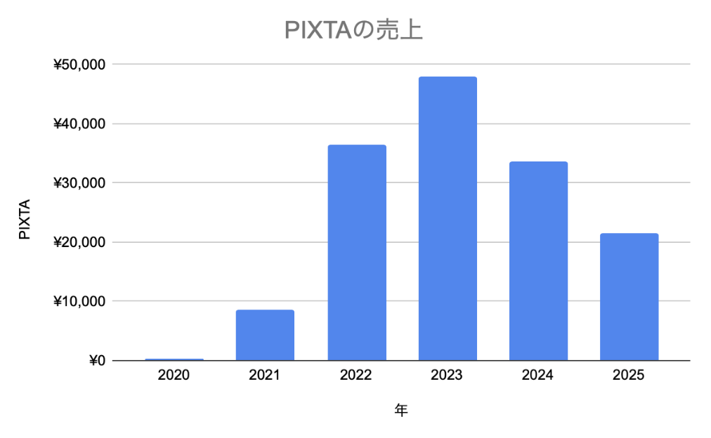 2年間はイラストを投稿しまくって、最近は放置している私の売上はどんなものでしょうか。