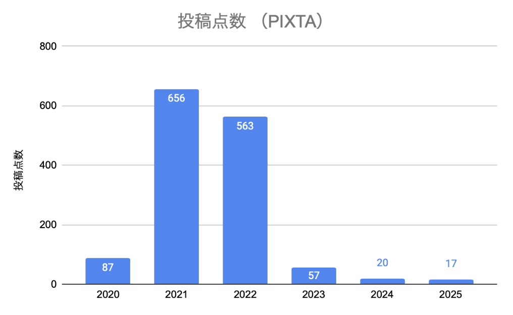 生成AIの発展により、私がストックを頑張っていた2021〜2022年と今とでは、ストック事情が大きく変わっているようです。その状況が全然キャッチできていません。